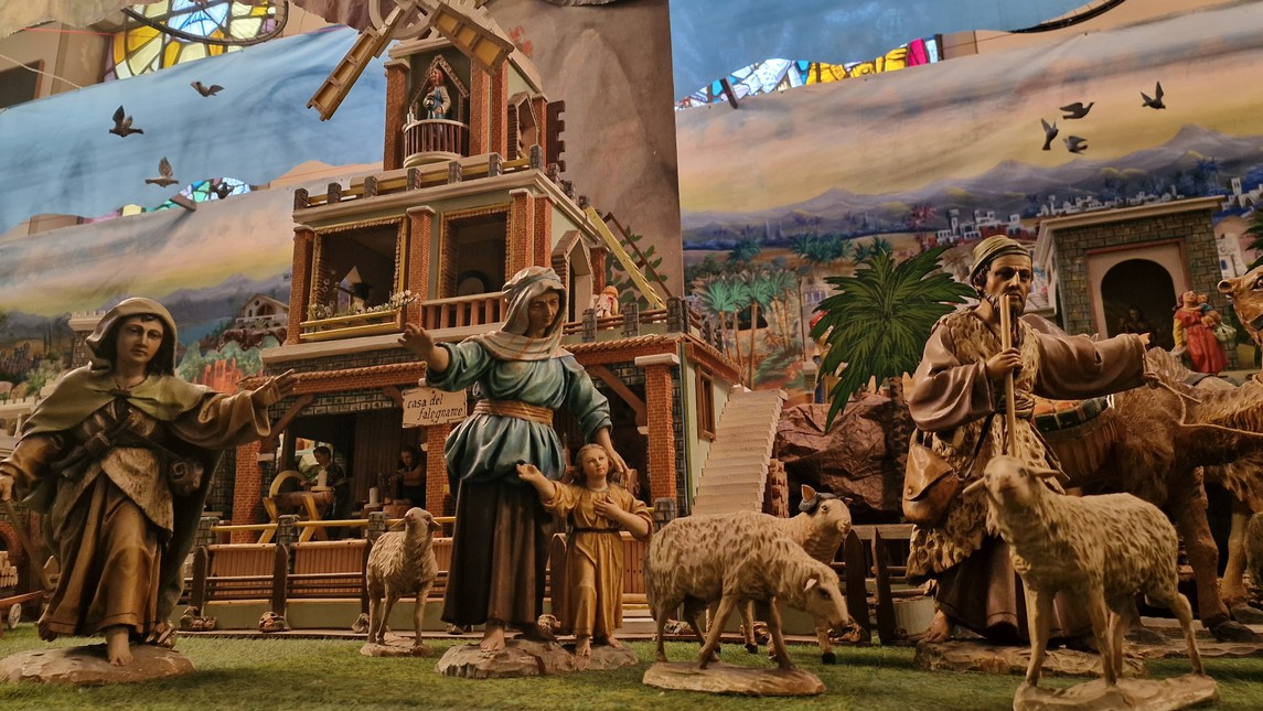 Il presepe si sviluppa in un imponente trittico, una struttura a tre parti che invita il visitatore a un vero e proprio percorso biblico, partendo da destra.