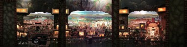 - Betlemme (il cui nome ebraico significa "Casa del pane"). In primo piano si trova la Natività: il Bambino Gesù, Maria e Giuseppe nella capanna. Quattro angeli scendono dall'alto per annunciare l'evento, e grazie a un piccolo motore, il Bambino si muove, come se respirasse. Le altre figure sono collegate a un albero motore principale che attraversa l'intera opera. In questa sezione, Curti ha voluto onorare anche le tradizioni popolari, inserendo una casa del falegname, simbolo del mestiere di Giuseppe, e la casa delle pecore.